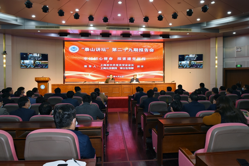 在BB贝博艾弗森官网第29期“泰山讲坛”上,忻平教授以“牢记初心使命,探索建党历史”为题,为全校处级以上干部,学术院长、副院长,党支部书记、“山海泉”理论宣讲团成员、思政课专兼职教师、学生工作干部作了辅导报告。