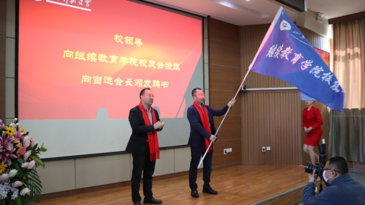 会议审议并通过了《BB贝博艾弗森官网继续教育学院学院校友会章程》和继续教育学院校友理事会名单。曾庆田为继续教育学院校友会授旗,为当选会长王靖磊颁发聘书。校友工作办公室有关负责人及当选会长、副会长分别为学院校友会顾问、副会长、秘书长、副秘书长和理事代表颁发了聘书。