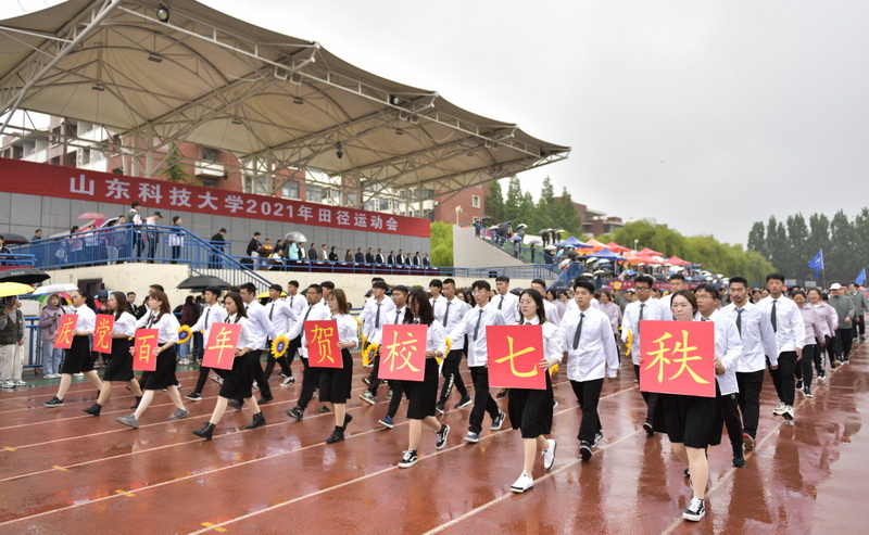 5月12日,风雨操场彩旗飘扬,锣鼓喧天,学校2021年田径运动会在绵绵细雨中拉开帷幕。校领导、校党委领导班子成员姚庆国、尹华、夏侯雪娇、张英杰、李玉霞、曾庆田、陈涛出席开幕式。开幕式由工会主席李垂文主持。