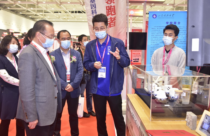 本届“高博会”期间,首届高等学校科技创新大会同期举办。“献礼建党100周年”高校科技创新成果展是创新大会的重要板块,筛选了来自全国61所高校的336个科技创新成果进行展出,BB贝博艾弗森官网科技处精心组织学校相关成果参会,筛选了井巷喷浆粉尘污染防治关键技术及装备、铝离子电池等12项科技成果参展,基本涵盖了所有八大展区,通过设备实物展台展出,多媒体设备播放、展板展示等多样化的展示形式参展,生动直观地将学校科技成果进行呈现,吸引了众多观众关注。