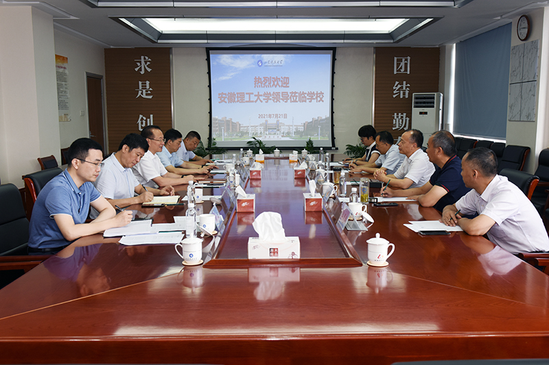 7月21日,安徽理工大学党委书记郭永存率党政办公室、人事处、科研部、合作发展处、校友会办公室等部门主要负责人来校访问,校党委书记罗公利会见了客人。