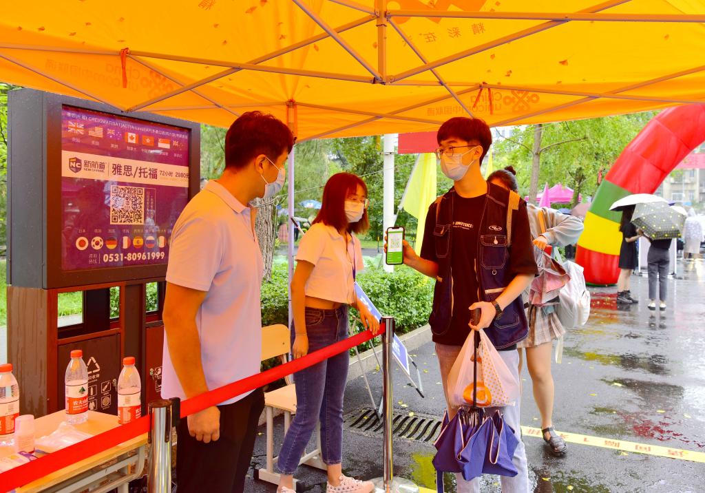 济南校区迎新现场查看健康码(孙雪琳/摄)