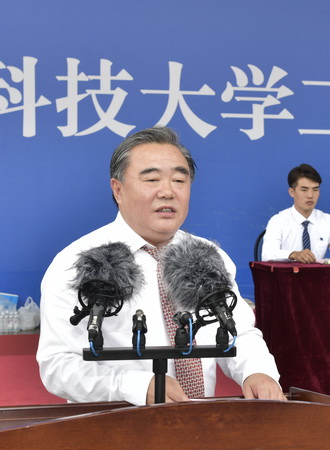 姚庆国指出,在BB贝博艾弗森官网校史里,始终镌刻着科大人的无悔奋斗、坚韧不拔。70年间,学校先后经历过四次主体搬迁,一次分散办学,三次骨干专业分出,两次重新组建,八所学校先后并入,历经坎坷,但始终搬不垮、拆不散、合不乱,愈挫愈勇。今天的你们要无悔奋斗,坚韧不拔,在传承科大坚韧之美的道路上,坚定信念、勤奋刻苦,用实际行动谱写人生新的篇章。