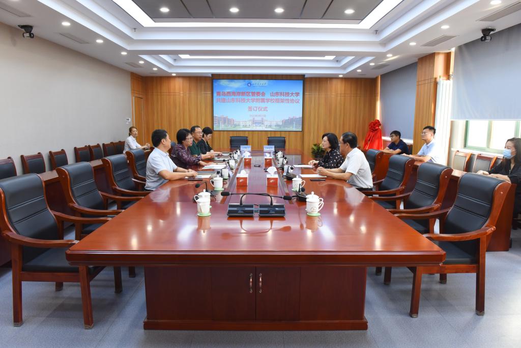 李玉霞、张磊娜、于瑞泳分别讲话,介绍了有关情况,就下一步落实协议内容、推进附属学校建设、打造新区教育高地等问题进行了深入交流。