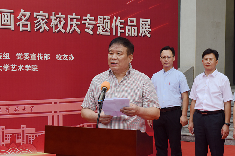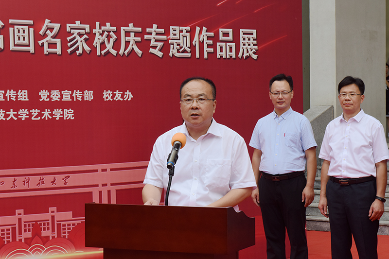 仪式上,艺术学院教授孟鸣、校书法家协会副会长孙玉宗先后发言,分别介绍了两个画展的筹备情况,表达了“翰墨抒豪情、丹青绘愿景”的真情实感,抒发了对建校70周年的美好祝福。