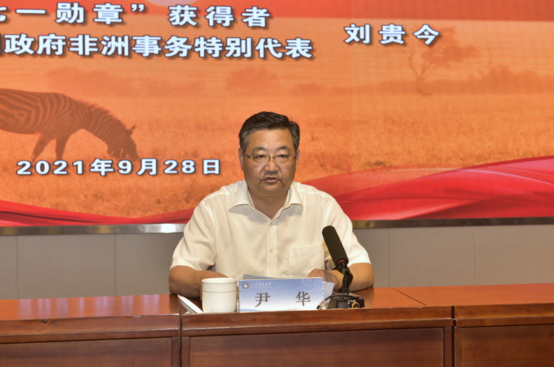 尹华在主持报告会时指出,刘贵今大使的报告引人入胜、情真意切,为我们上了一场精彩的党课,同时也是一场为党和国家事业倾情奉献的感人事迹报告会。要深刻学习刘贵今大使忠诚于党、信念坚定的政治品格,坚定理想信念,厚植家国情怀,把榜样的力量转化为实际行动,在教育战线上为实现中华民族伟大复兴和第二个百年目标奉献自己的力量。