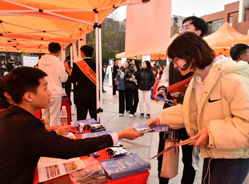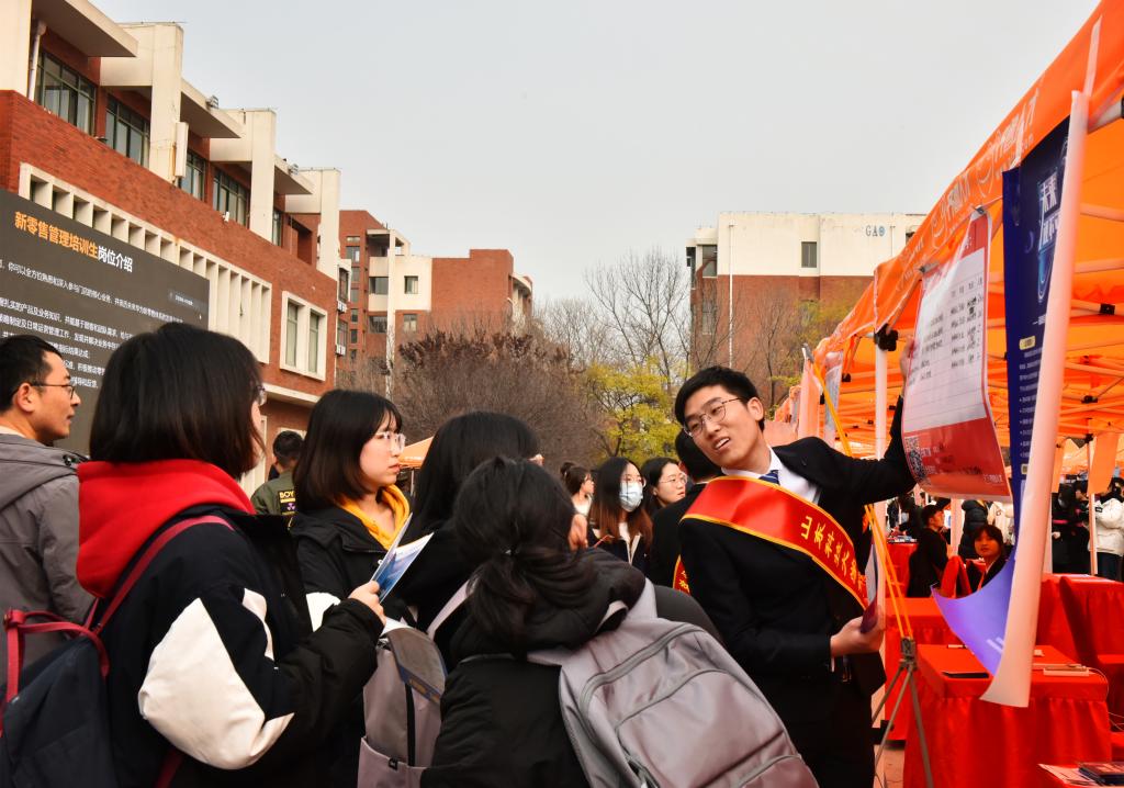 “同学你好,我是校园大使,关于这家招聘的相关问题你都可以问我。”招聘会现场,受企业委托代表企业进行宣介并代收求职简历的“校园大使”们在展位上热情的招呼着排队咨询的毕业生。