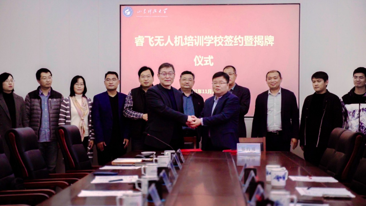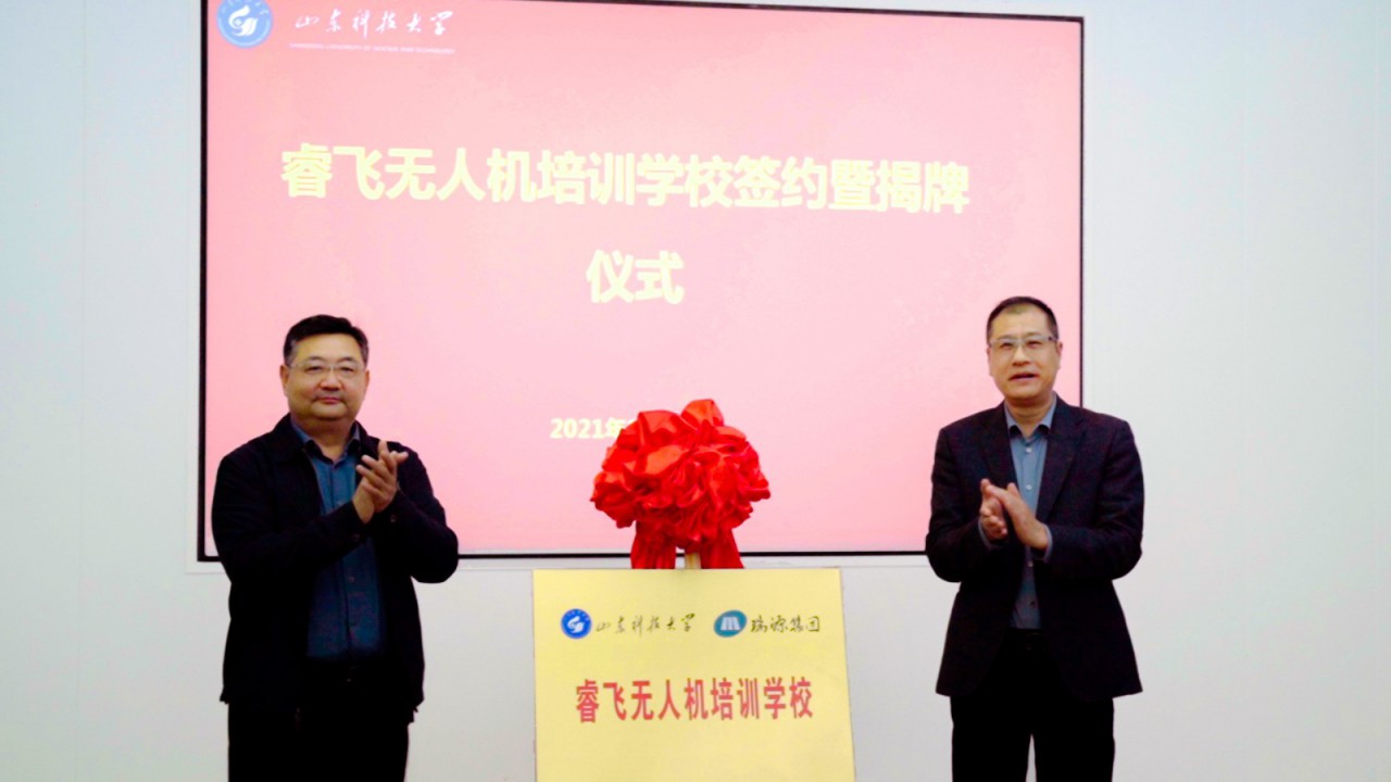 11月17日,BB贝博艾弗森官网与瑞源工程集团举行“睿飞无人机培训学校”揭牌暨签约仪式。校党委副书记尹华,瑞源控股集团执行总裁、工程集团总经理于瑞建出席仪式并共同为“睿飞无人机培训学校”揭牌。测绘学院党委书记秦昌盛与山东瑞智飞控科技有限公司总经理孔锁财代表双方签署校企合作协议。