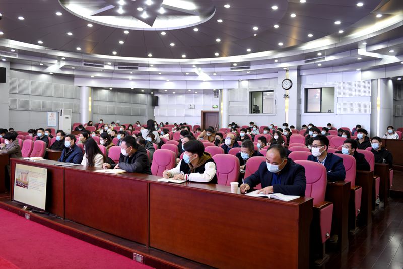 12月16日,校长姚庆国为发展规划处、审计处、机电学院和化工学院教工党员代表,部分班级学生宣讲党的十九届六中全会精神。
