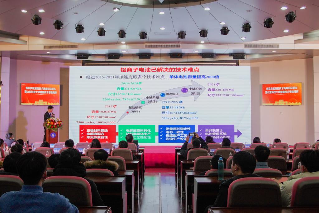 国家杰青、清华大学教授/青海大学副校长梅生伟线上作了“非补燃压缩空气储能技术及工程实践”的报告,国家杰青、中科院工程热物理研究所副所长陈海生作了“压缩空气储能研究进展与发展趋势”的报告,国家杰青、北京化工大学化学工程学院院长邱介山线上作了“储能功能碳材料的合成及结构性能”的报告,国家杰青、中国科学技术大学科技成果转移转化办公室主任吴长征作了“氧电催化中的表界面合成化学”的报告,国家杰青、北京师范大学刘亚军线上作了“progress in the theroretical study of bioluminescence”的报告,山东电力工程咨询院设计总工程师裴善鹏作了“山东储能政策设计的主要考虑因素和师范项目进展”的报告,山东思极科技有限公司设计总工程师刘远龙作了“新型电力系统下新能源和储能发展运行问题思考”的报告,BB贝博艾弗森官网教授林孟昌作了“可充放电铝离子电池技术的应用研发及产业化”的报告。(记者:范琪 摄影:韩洪烁 彭程 责编:任波)