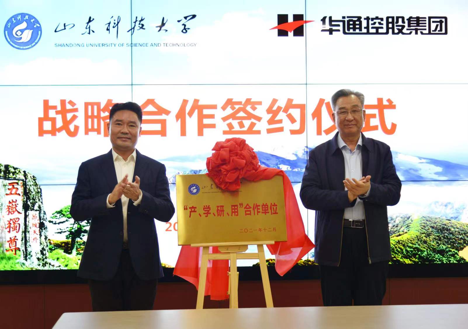 12月17日,校党委副书记兼泰安校区党委书记、管委主任王少鹏一行到华通控股集团走访,与华通控股集团董事长刘电新,华通控股集团副总裁、华通建设集团董事长张东宁等座谈。校企双方签署战略合作协议,共同为“产、学、研、用”联合实践基地揭牌,就进一步加强合作进行深入交流。