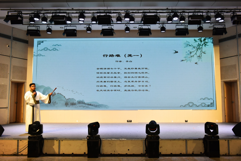 在比赛环节间隙,诗朗诵、歌曲等节目穿插上演。学校留学生的诗词朗诵《行路难》《再别康桥》字正腔圆,文法大艺团声乐队的歌曲《岳阳楼记》悠扬绵长,文法学子将《沁园春·雪》《小平,您好》《满江红·江上青百年诞辰祭》《科学发展观之歌》《念奴娇·追思焦裕禄》等诗作朗诵出爱国真情,让诗词大会成为学生品味党史、感悟传承、夯实文化底蕴的思想政治教育实践课新载体,以此献礼党的二十大。