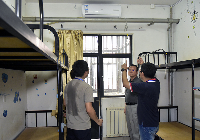 罗公利检查学生公寓空调安装工作