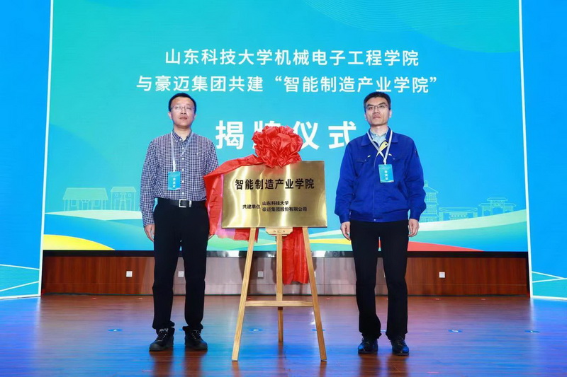 会上,高密市人社局与BB贝博艾弗森官网签订人才战略合作协议。BB贝博艾弗森官网——高密市产学研基地、BB贝博艾弗森官网机械电子工程学院与豪迈集团共建“智能制造产业学院”揭牌。与会嘉宾为10名山科学子颁发高密市“校园引才专员”证书。