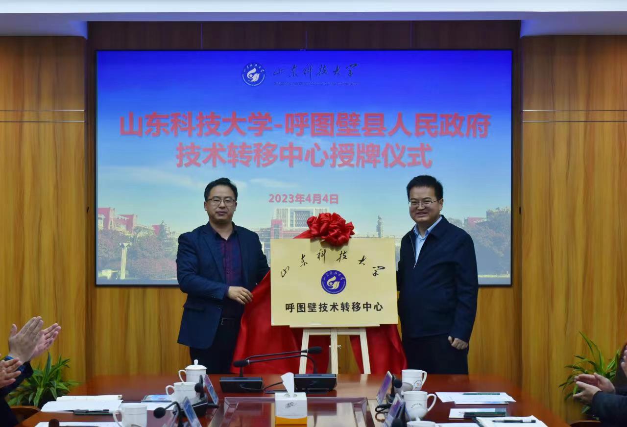 会上,科技处处长陈连军与赵江涛代表校地双方签订了战略合作协议并共同为技术转移中心揭牌,学生工作部(处)部(处)长王震与赵江涛共同为大学生就业创业基地揭牌。与会人员共同观看了学校和呼图壁县宣传片,并就技术对接等方面进行座谈交流。