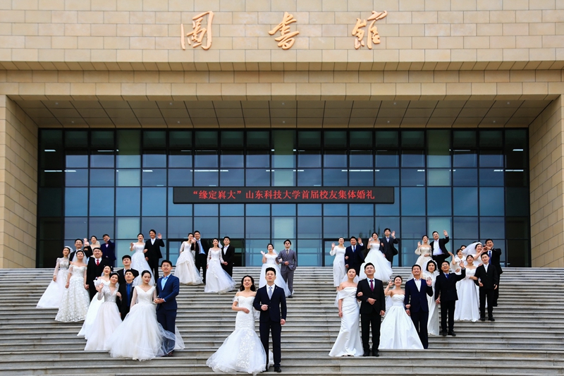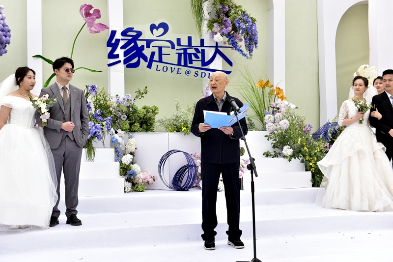 校友总会会长姚庆国教授说,“走过70余载风雨的山东科大,树人立新,四十余万校友遍布全球、全国,母校和校友永远顾盼情深。今天,25对佳偶用自己美满的爱情记录了对科大的爱,更见证了母校对每一位科大学子的爱。”他回忆了校友们的校园生活,“曾经,你们从天南地北相聚于科大校园,孜孜不倦、学海求索”,祝福校友“良缘永结、比翼双飞!”
