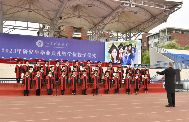 典礼开始前,10余名毕业生带来了歌曲快闪节目,他们用动情的歌声诉说着对母校的浓浓眷恋与对师友的依依不舍,唱出了科大人无悔的奋斗青春。由离退休干部、教工组成的金秋合唱团以合唱的形式为毕业生送来真挚的祝福。现场还播放了毕业生、师友的祝福视频,一句句祝福的话语、一帧帧动人的画面串联成一部即将谢幕的电影,播放着曾经的过往与成长。