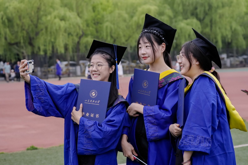除了仪式感满满的现场布置,学校还在微信视频号等平台进行实时直播,让学生家长、校友等也能同步感受毕业氛围,10余万人次通过直播观看毕业典礼。“感恩母校的培养,做一个对社会有用的科大人”“一路顺风,前程似锦”“学校的仪式感令人感动”“跨越山海而来,各奔东西而去”……线上观看直播的家长、学生、校友们也纷纷在评论区留言,一句句暖心的评论承载着对学校和毕业生的真挚祝福、美好祝愿。