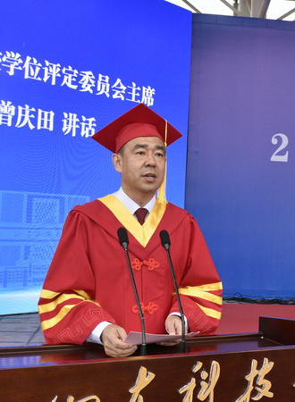 曾庆田代表学校向圆满完成学业的硕博毕业生表示热烈的祝贺和深情的祝福,向为此付出辛劳的老师、家长致以崇高的敬意和诚挚的感谢。他指出,在过去的几年里,同学们用实际行动践行锐意进取、勇于创新、敢于实践、勤奋学习,与祖国共奋进、与学校同成长,取得了一项又一项好成绩。回想同学们这几年的努力和付出,大家都为优秀勤奋的你们感到无比自豪、由衷骄傲。同学们即将重新起航,踏上新征程,希望同学们秉承BB贝博艾弗森官网“惟真求新”的校训,守正出新,追求卓越,奏响属于自己的青春赞歌。