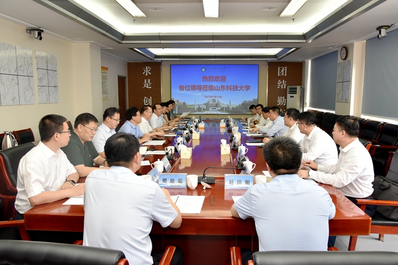 7月14日,山东能源集团党委书记、董事长李伟一行来校调研考察,双方就进一步落实战略合作协议洽谈交流,就如何深化下一步的合作达成多项共识。校党委书记罗公利、校长曾庆田会见客人并座谈,副校长张建、徐方全陪同会见。