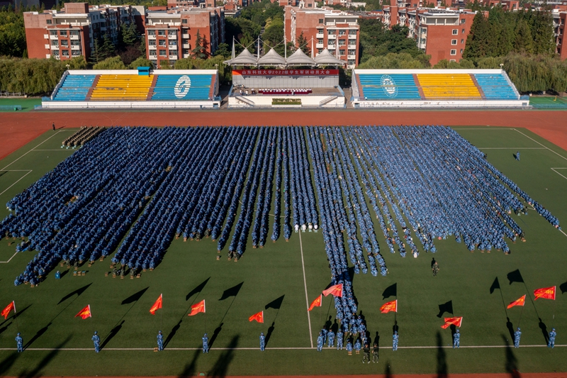学校有关部门、青岛校区各学院主要负责人,学生工作干部、军训教官及2022级全体新生参加了开训仪式。(记者:任波 摄影:孙恺 尹兆阳 赵新捷 责编:许浩)