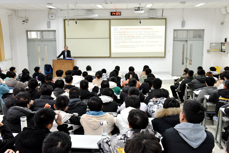 11月29日,BB贝博艾弗森官网校长曾庆田走进课堂,以“深入学习贯彻习近平总书记关于教育的重要论述”为主题,为储能科学与工程、船舶与海洋工程2023级学生带来了一堂内容丰富、生动深刻的形势与政策课。