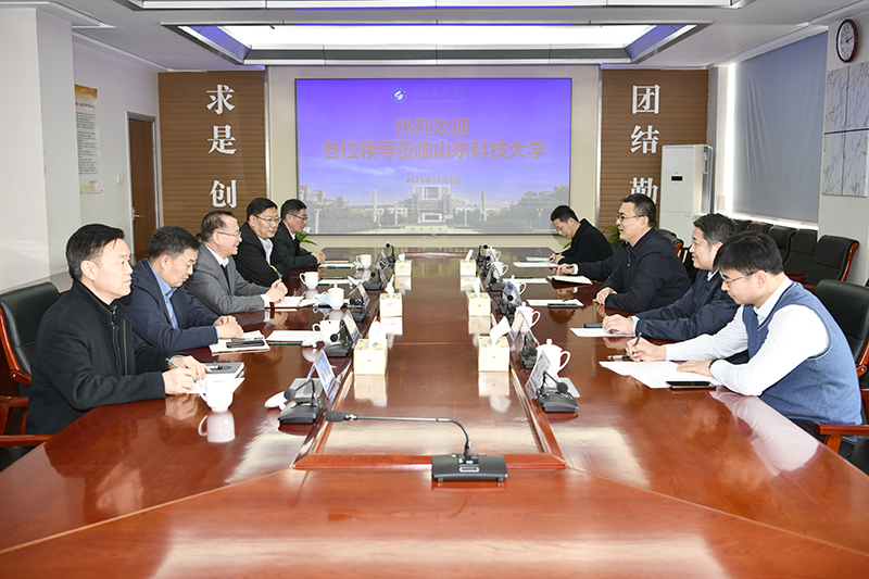 12月5日,山东工商学院党委书记郭建国、党委副书记张宗伟、副院长杜曙光等来校访问,校党委书记罗公利会见郭建国一行并座谈,副校长诸葛福民陪同会见。