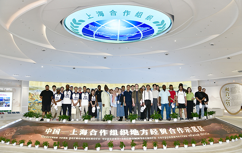国际学生在上合之珠国际博临览中心留影
