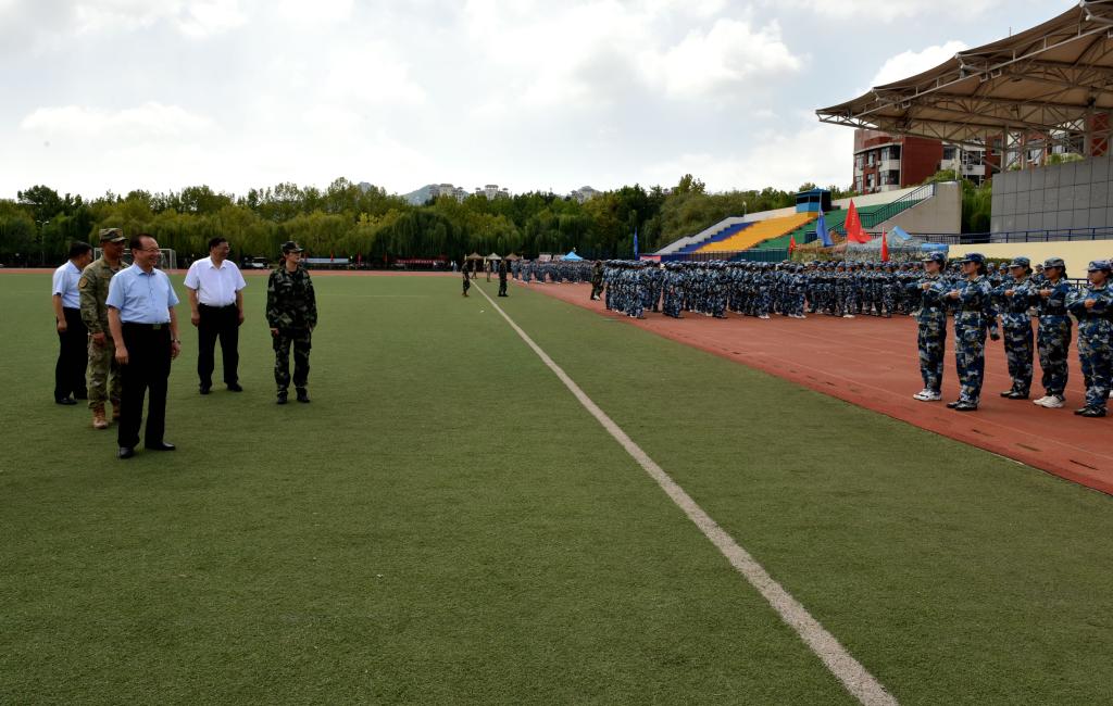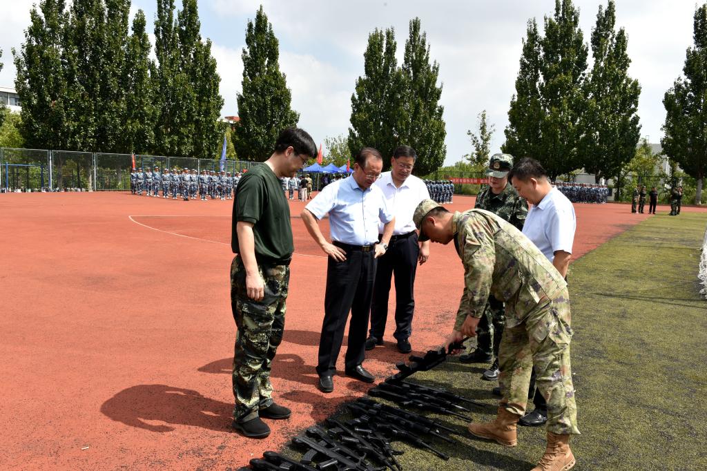 训练场上,同学们身姿挺拔、目光坚定、口号嘹亮,以良好的精神面貌全身心投入训练。罗公利与军训教官、参训学生亲切交流,详细了解了军训的总体情况。