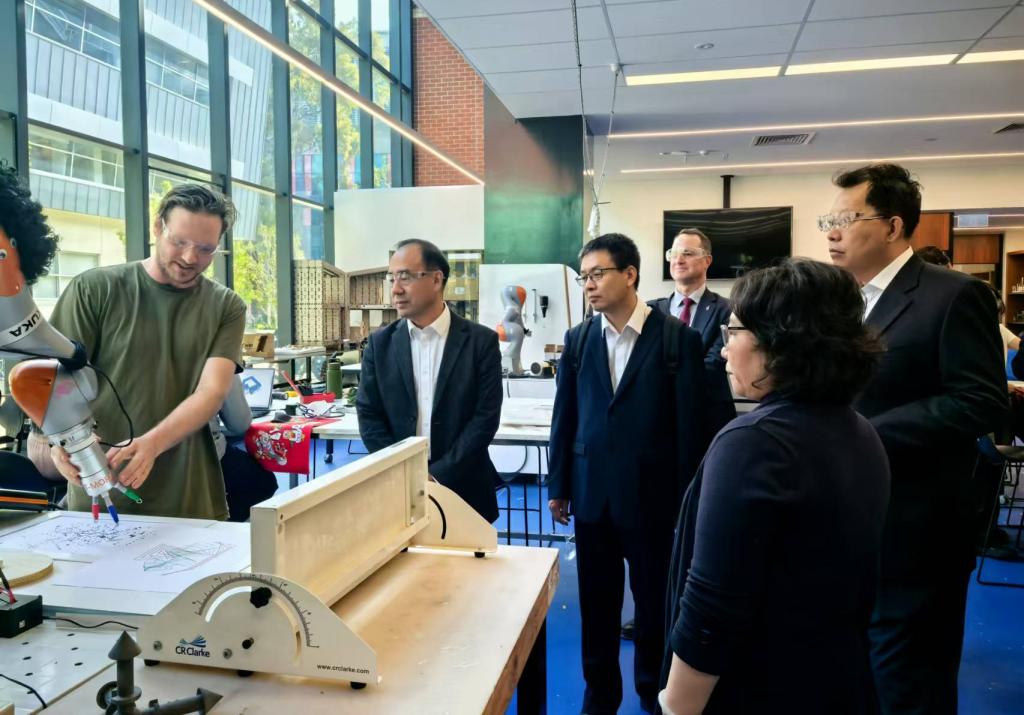 在斯威本科技大学,校长Pascale Quester、科研常务副校长Karen Hapgood、对外事务常务副校长Bronte Neyland以及国际事务副校长Douglas Proctor等人热情接待了代表团一行。双方对过去四年来合作举办斯威本学院取得的成果给予了充分肯定,深入探讨了斯威本学院围绕智能制造和商科领域进行专业优化调整的计划并达成了共识,同时表示双方将密切配合、建立工作协调机制,做好迎接明年教育部中外合作办学评估的准备。此外,双方还共同探讨了在空间安全、新能源、防灾减灾、结构工程、新材料、3D打印和产品设计等领域开展科研合作、博硕士联合培养的可能性并就下一步落实合作模式和合作专业达成一致。访问期间,代表团一行还与贝博官网在斯威本科技大学学习的学生和教师进行座谈。代表团还在工学院院长Emad Gad的陪同下实地访问了斯威本科技大学的结构工程、工业设计和3D打印实验室。