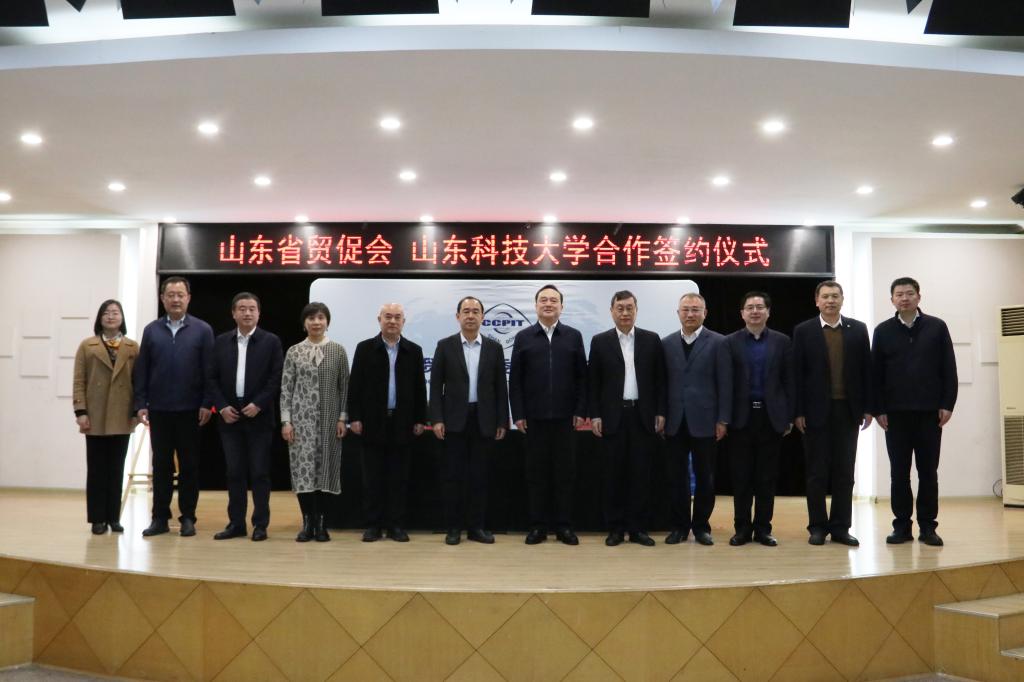 11月25日,BB贝博艾弗森官网与中国国际贸易促进委员会山东省委员会(简称:山东省贸促会)签署合作协议,学校党委副书记、校长曾庆田,山东省贸促会党组书记、会长孟向东代表双方签署协议。济南校区管委常务副主任郭加书,山东省贸促会党组成员、副会长贺忠军,山东省贸促会二级巡视员孙强出席会议。