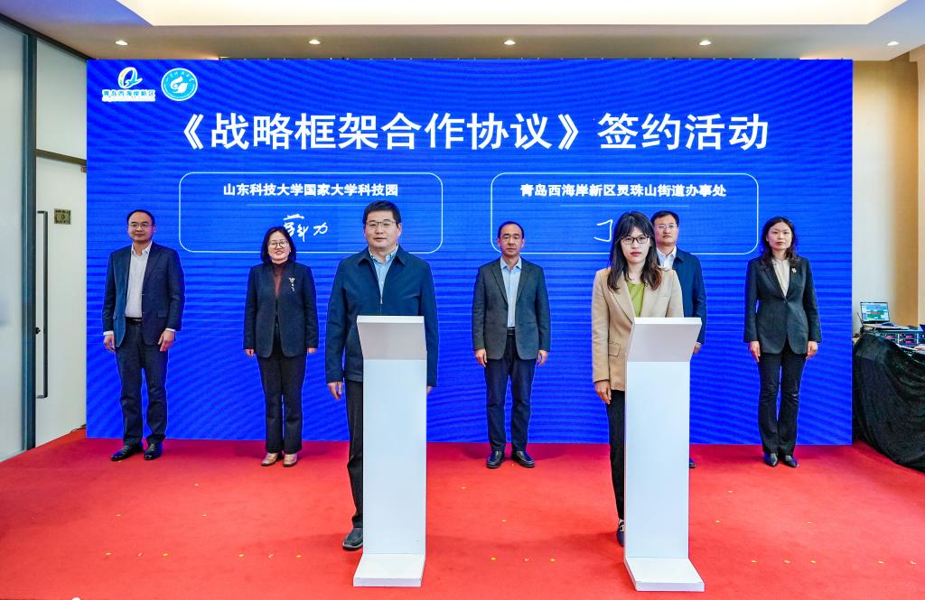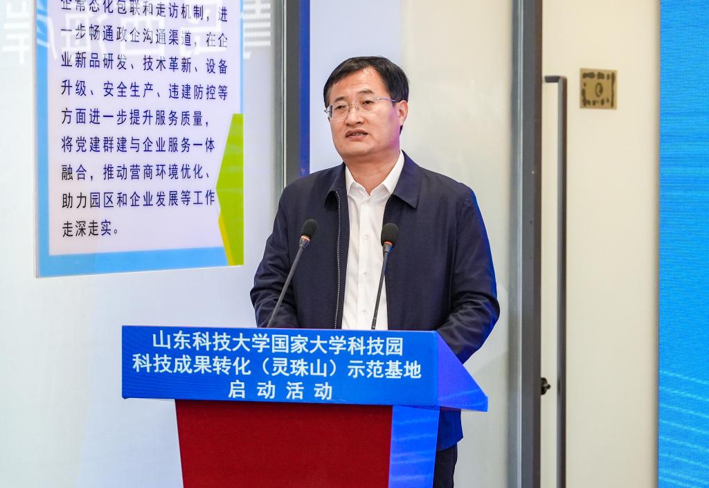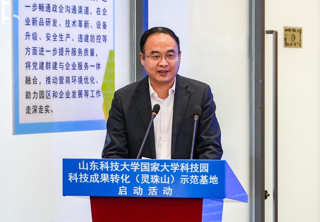 曾庆田在致辞中表示,BB贝博艾弗森官网国家大学科技园现有高等学校科技成果转化和技术转移基地、国家技术转移示范机构等八个国家级服务平台,始终坚持在科技成果转化、科技企业孵化、创新创业人才培养上持续发力,学校国家大学科技园成果转化(灵珠山)示范基地的建设启动,是实现科技成果转化落地的创新举措。我们欣喜地看到已有青岛星科瑞升信息科技有限公司、青岛秀山移动测量有限公司、青岛知一新材料有限责任公司等6家企业转入灵珠山示范基地进行产业化发展,希望示范基地融合校地资源,把基地建设成为校城深度融合发展的“新高地”,为新区经济社会发展做出新贡献。