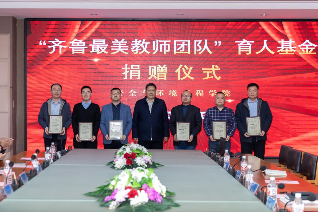 12月3日,学校举行“齐鲁最美教师团队”育人基金捐赠仪式。安全学院程卫民、王刚、周刚、聂文、胡相明、刘震6位教授出资120万元设立“齐鲁最美教师团队”育人基金,用于奖助学生学习、科技创新活动及学院学生工作事业发展。副校长诸葛福民代表学校接受捐赠并颁发捐赠证书。