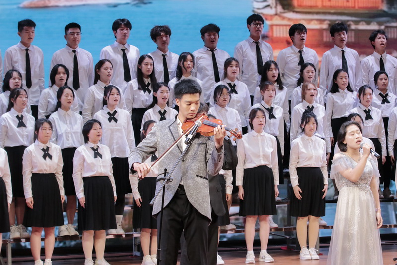 舞台之上,旋律起伏,情感汇聚。各学院的演唱不仅是比拼,更是一次深情的集体表达。歌声里,交织着对历史的敬意、对山河的热爱与对未来的豪情。当朗诵声、情景戏、光影秀与音符共舞,经典歌曲便焕发出青春的活力,留下震撼而悠长的回响。