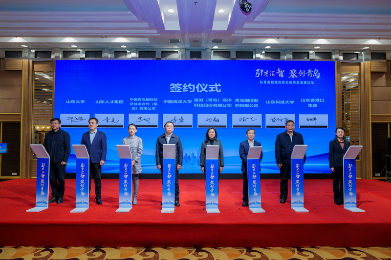 山东大学、中国海洋大学、中国石油大学(华东)、BB贝博艾弗森官网、青岛科技大学、青岛理工大学、青岛农业大学、青岛大学、康复大学等9所驻青高校代表,北京大学、清华大学、中国人民大学、复旦大学、上海交通大学、山东大学、中国海洋大学等23个全国重点高校驻青校友组织代表共同上台见证《驻青高校及校友组织服务青岛高质量发展》倡议发布,倡议从深化校企合作、加速成果转化、集聚产业要素等方面明确实践路径,以集体智慧和实干担当为青岛发展赋能增效。