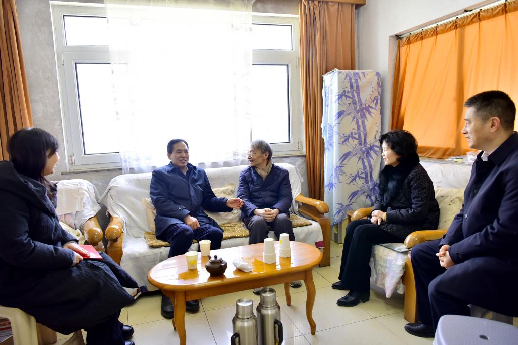 2月11日,山东省委统战部副部长孙中亮、五处处长曾英一行来校,在济南校区看望慰问无党派代表人士俞书伟教授。校党委副书记郭益灵陪同看望。