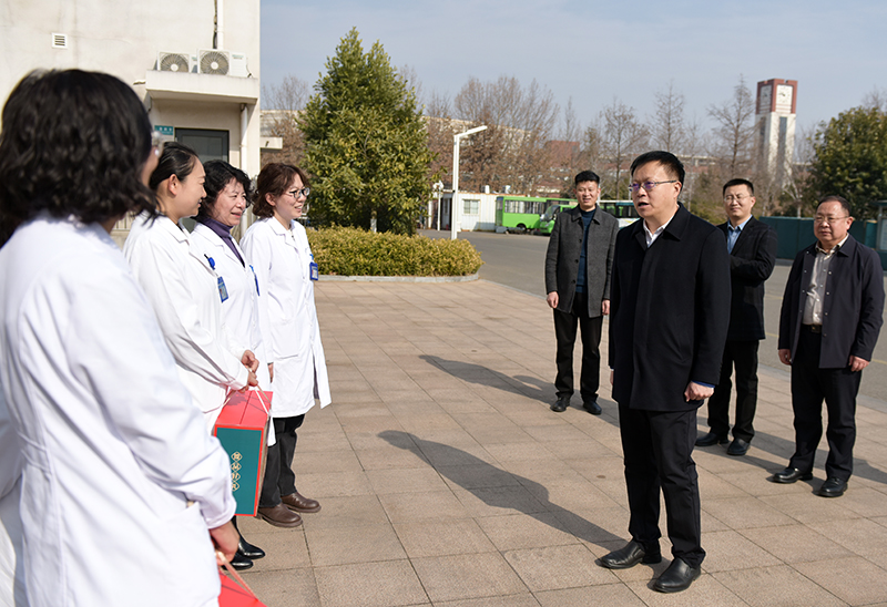 2月13日上午,校党委书记王君松看望慰问了春节期间坚守工作岗位的部分单位值班人员,为他们送去节日问候和新春祝福。