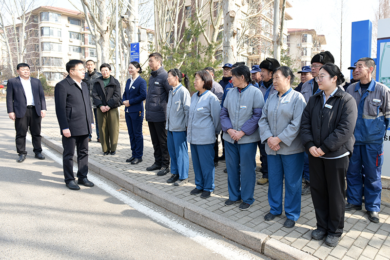 在山海花园大门看望慰问工作人员