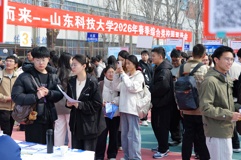 在政府组团专区,山东省内12地市人社部门组团“山东十强产业集群”优质企业参会。烟台市组织58家优质企业参会,淄博市人社部门发动55家企业集体揽才,并同期开展“淄博-高校人才直通车”淄博家乡学子见面会,向淄博籍毕业生推介家乡引才政策和优质企业,发出回乡发展邀约。人社、企业、学子齐聚一堂,畅谈家乡变化,共话职业发展。数据科学与大数据技术专业2026届毕业生马文超参加完活动说:“家乡企业组团来校招聘交流,让大家倍感暖心。家乡对人才的满满诚意更坚定了我们回淄就业的决心,希望能用所学专业助力家乡发展。”