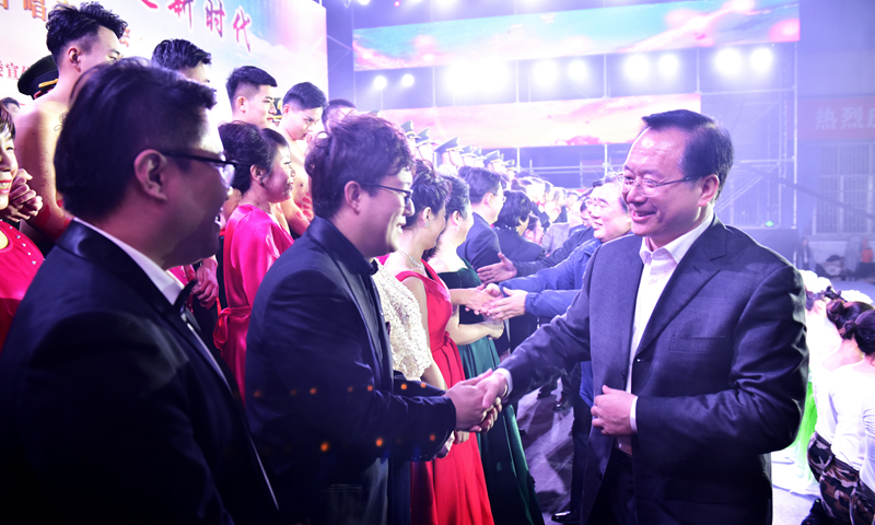 校党委常委罗公利、姚庆国、尹华、曾庆良、高建广、张英杰、李克周、陈涛及学校第三届党代会部分代表和师生党员代表共计1300余人集体观看了合唱演出。