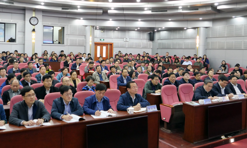 校党委领导班子成员罗公利、姚庆国、王少鹏、刘孟德、夏侯雪娇、张英杰、陈涛,全校处级干部、机关科级干部、全体学生工作干部参加了报告会,报告会由校纪委书记夏侯雪娇主持。