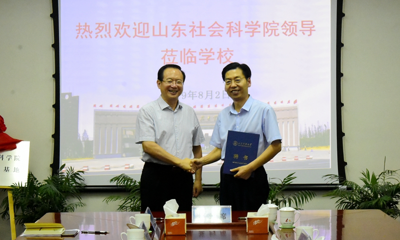 签约仪式后,罗公利分别为唐洲雁及山东社科院科研处处长张凤莲、政策研究室主任韩冰等颁发聘书。