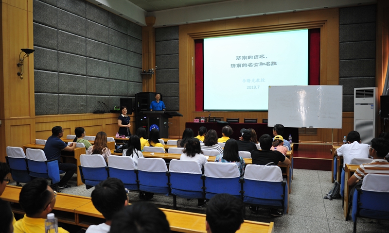 在泉城济南,原BB贝博艾弗森官网党委副书记李曙光教授为同学们作了题为“济南的由来、济南的名士和名胜”的文化专题讲座,通过齐鲁名士的生动故事和文化名胜的历史由来,详细讲解了齐鲁文化渊源、内涵特点及其在中国传统文化中的重要地位。两岸师生共同游览了大明湖、趵突泉等名胜,体验了泉城文化的魅力。