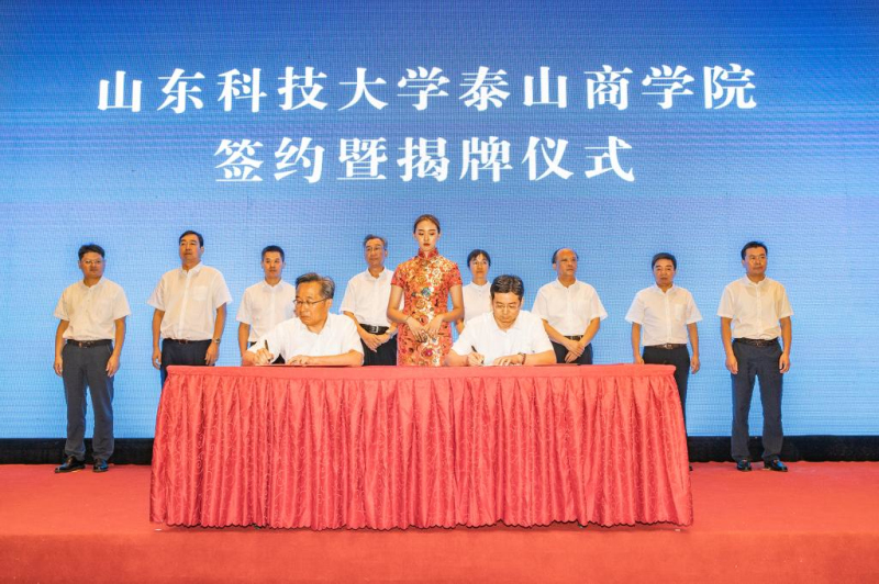 校党委副书记兼泰安校区党委书记、管委会主任王少鹏,泰安市人民政府副市长成丽为“BB贝博艾弗森官网泰山商学院”揭牌。泰山区委书记赵斌致辞。江苏河海新能源股份有限公司董事长杨家华介绍共建情况。泰安校区党委副书记王民、江苏河海新能源公司副总裁兼泰山创新动力港有限公司董事长张纯刚代表校企双方签订《共建商学院协议书》。仪式由泰山区委副书记、区长王爱新主持。