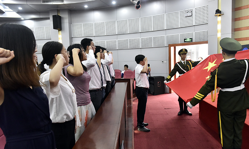 会议还举行了新入职教师宣誓仪式。在老教师赵同彬的带领下,新入职教师面对国旗,举起右拳,立誓忠诚党的教育事业,做“四有”好老师,为学生成才、学校事业发展、国家繁荣、民族振兴贡献智慧和力量。(记者:信永华 通讯员:刘先阳 责编:范琪)