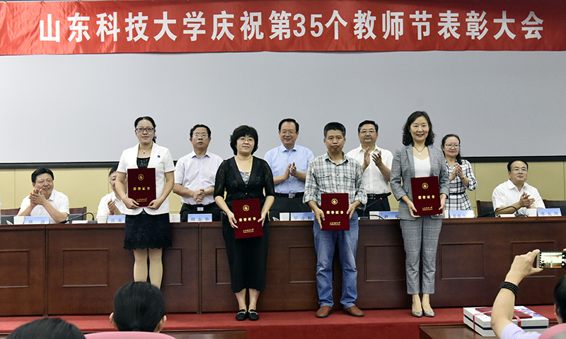 校党委书记罗公利出席表彰会并讲话,校党委副书记尹华主持表彰会,副校长周东华宣读表彰名单,全国模范教师王来教授代表教师发言。全国模范教师、山东省优秀教师、省十佳女职工建功立业标兵岗、山东省工人先锋号、全国煤炭教学名师、山东省教育工会先进女职工集体和个人、山东省优秀研究生指导教师、青岛市教书育人楷模、青岛市优秀教师及校级先进集体、先进个人等受到表彰。