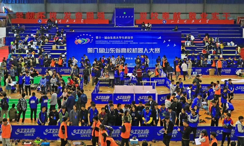 据悉,第十一届山东省大学生科技节第八届山东省高校机器人大赛由山东省科学技术协会、中共山东省委高校工委、共青团山东省委、山东省发展和改革委员会、山东省经济和信息化委员会、山东省教育厅、山东省人力资源和社会保障厅主办,由山东省机器人研究会和BB贝博艾弗森官网承办。本次大赛旨在培养高校大学生的实践能力、创新精神和团队精神,对接现代企业对机器人技术创新的需求,为培养高素质的机器人行业人才打下良好基础。(记者:任波 摄影:任波 张晨阳 刘先阳 刘旋 李胜龙 王雅龙 白婧 刘素英 责编:范琪)