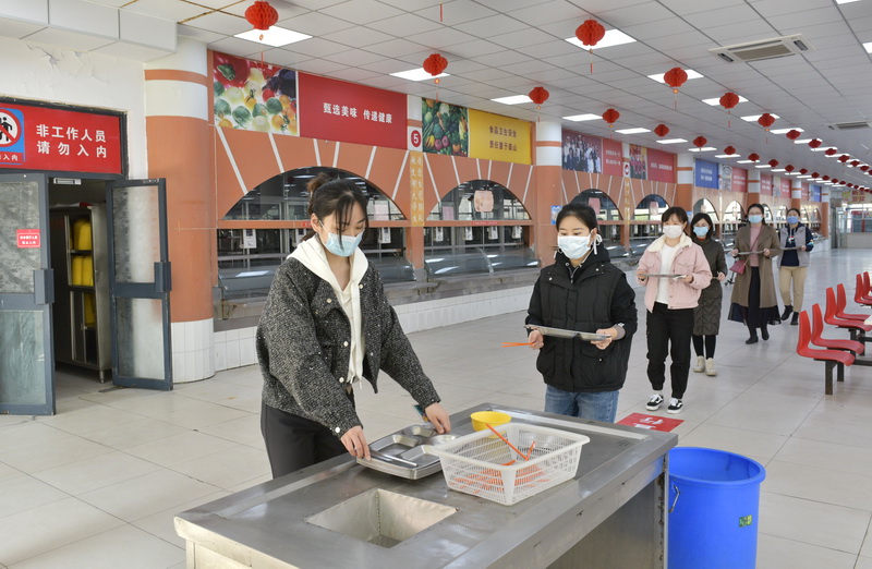 用餐后排队整理餐具
