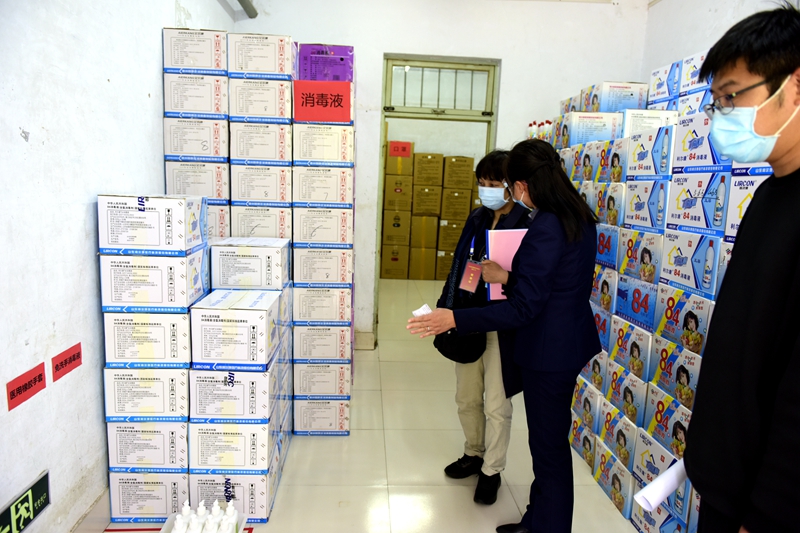 在仓库核验防疫物资