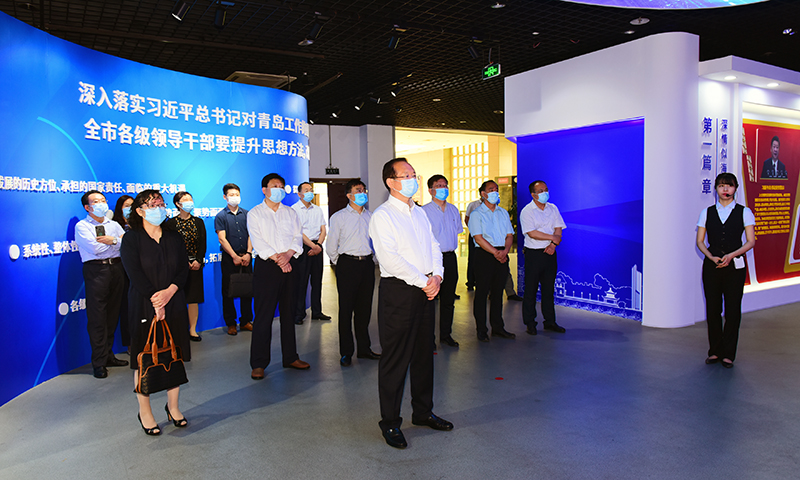 参观过程中,罗公利等边走边看,认真听取工作人员讲解,不时驻足详细询问有关情况。通过参观,大家充分感受到青岛围绕“办好一次会,搞活一座城”,“精兵强将攻山头、典型引路稳阵地”所带来的深刻变化,被围绕和聚焦城市发展的重点、难点、痛点、堵点打响的15个攻势所震撼,体会到坚持“问题导向、目标导向、结果导向、平台思维、尽锐出战”的现实意义。大家纷纷表示,一定牢记习近平总书记的嘱托,深入贯彻落实中央和省委决策部署,不断提升思想方法,改造工作方法,顺势而为,乘势而上,聚势而强,立足岗位,担当奉献,进一步加强内涵建设,全力推动学校事业的高质量发展,一步一个脚印把“三步走”的美好蓝图变成现实。
